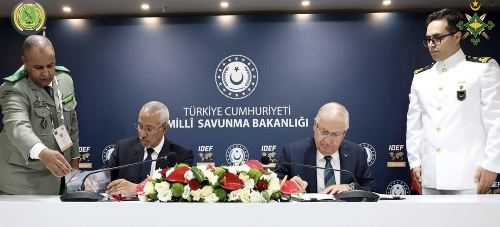 وقّعت موريتانيا وتركيا، الخميس، مذكرة تفاهم تهدف إلى تعزيز التعاون العسكري بين البلدين، وذلك على هامش معرض الصناعات الدفاعية الدولي (IDEF 2025) المنعقد في مدينة إسطنبول.