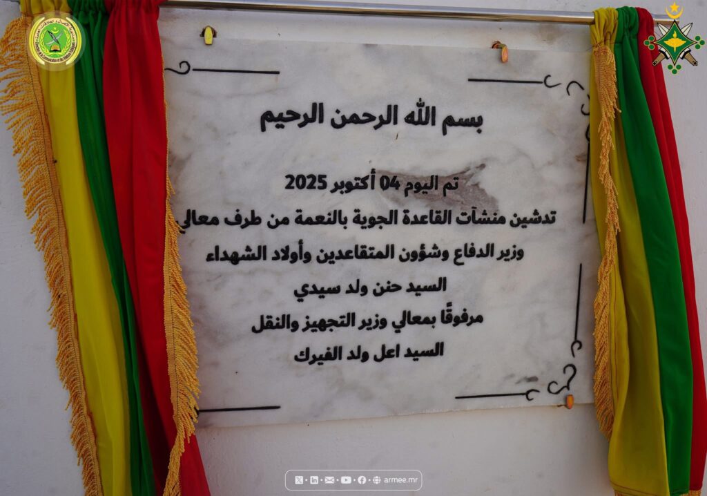 أعلنت الأركان العامة للجيوش أن القاعدة الجوية بمدينة النعمة باتت جاهزة بشكل كامل للعمليات، عقب تدشين مجموعة من المنشآت الجديدة أشرف عليها وزير الدفاع الوطني حنن ولد سيدي.