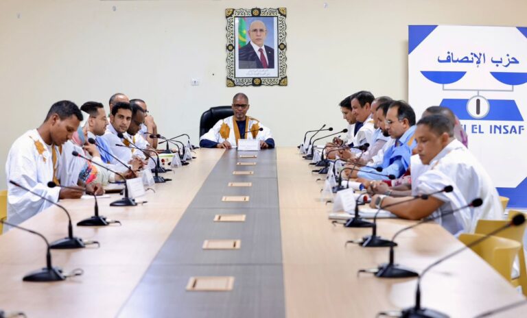 عقد رئيس حزب الإنصاف محمد ولد بلال مسعود، مساء الثلاثاء لقاءً مع أعضاء اللجنة الوطنية للشباب، بحضور رئيس اللجنة المصطفى ولد باب، وذلك في إطار تنشيط العمل داخل الهيئات الحزبية وتعزيز ديناميكيتها.