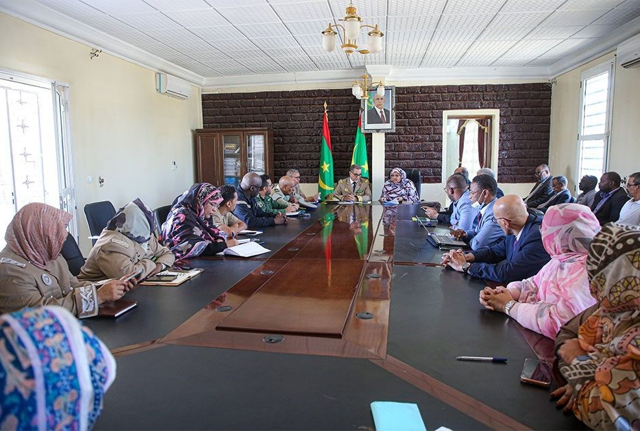 وحضر الاجتماع والي نواكشوط الغربية حمود ولد امحمد، ورئيسة جهة نواكشوط فاطمة عبد المالك، إلى جانب حكام المقاطعات وعدد من المنتخبين المحليين.