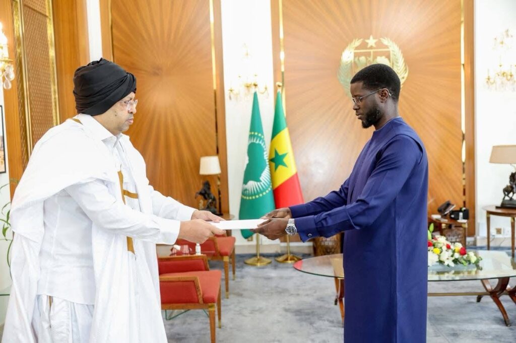 قدّم السفير الموريتاني في داكار، محمد عبد الله ولد عثمان، أوراق اعتماده إلى الرئيس السنغالي باسيرو ديوماي فاي، بصفته سفيرًا فوق العادة وكامل السلطة للجمهورية الإسلامية الموريتانية لدى جمهورية السنغال.